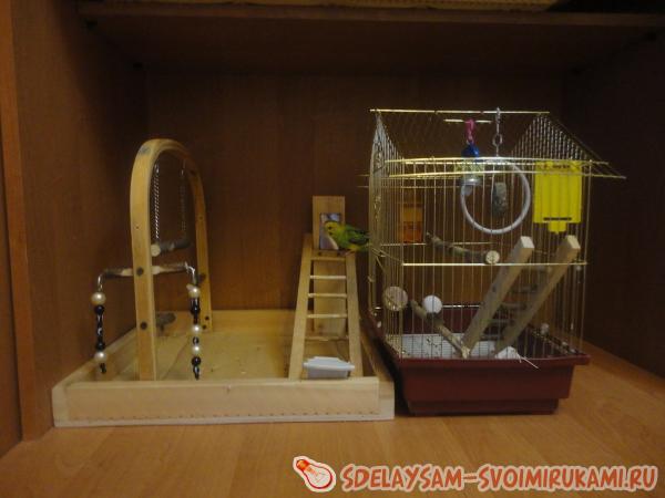Если у вас есть возможность, купите для своей птицы гнущийся канат. С его помощью птичке можно сделать всевозможные вариации круглых качелей, гнутых лесенок, прямоугольных арок и т.д.