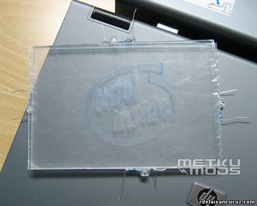 Для листа со словом «Intel» был использован один светодиод, как и для слоя «Inside». А вот для подсветки изображения овала сделаны два светодиода, расположенные на противоположных сторонах.