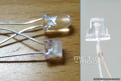 Используемые светодиоды имеют толщину 5 мм. При этом толщина листов акрила всего 3 мм. Поэтому пришлось немного над ними поработать. Теперь они стали короче и компактнее, что немного упростило их установку. Но если в магазине доступны 3-мм светодиоды, то лучше все-таки купить сразу их.