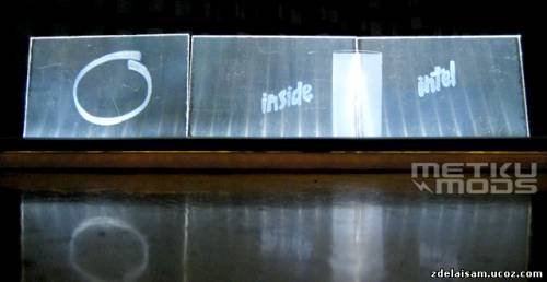 Все слои собраны. Первым идет «Intel», затем «Inside». Лист с овалом идет последним. Включение подсветки происходит в том же порядке. В используемом дизайне последовательность не играет важной роли, так как нет перекрывающих линий гравировки.