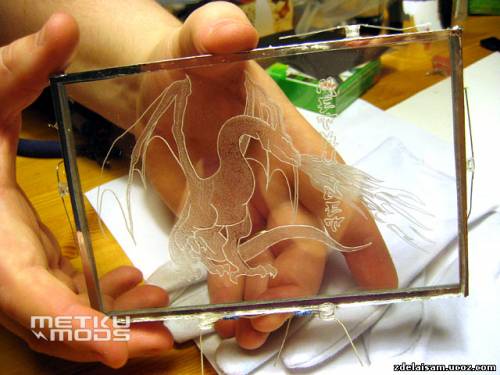 Моддер отлично справился со всеми этапами производства многослойной гравировки с анимированной подсветкой. Особое внимание он уделял чистоте. Даже малейшая пылинка между слоями акрила или следы от пальцев могут значительно испортить общее впечатление от картины. Но не следует пользоваться спиртосодержащими средствами при очистки акрила, они могут его повредить. К тому же необходимо сохранять защитную пленку как можно дольше.