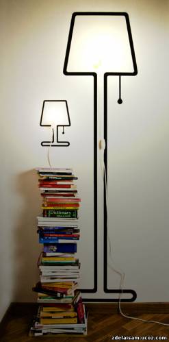 Мне очень понравилась этот светильник. На стене нарисован контур. На верхнюю часть направлен прожектор. И создается вид как будто нарисованная лампа светит ! Очень оригинально и стильно !