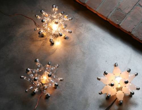 В любой конструкции самодельного светильника лучше всего использовать энергосберегающие лампы. Они практически не греются и не плавят конструкции.