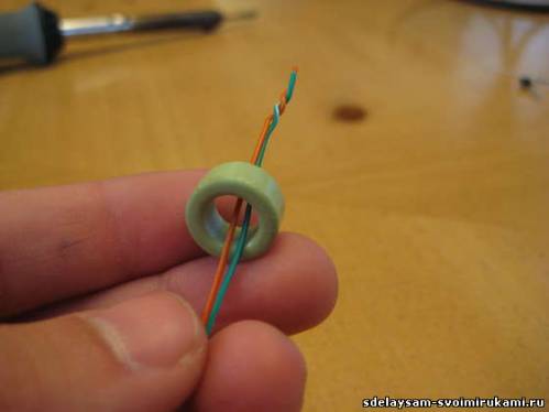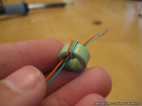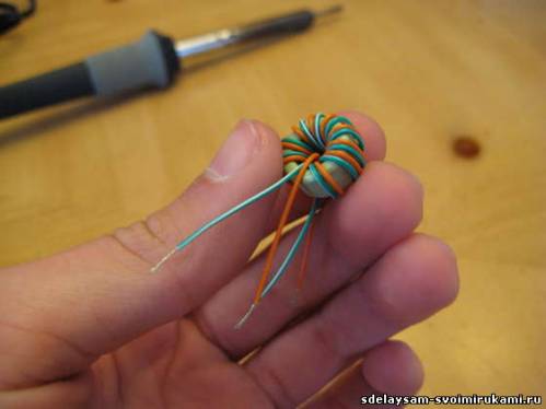 Самый ответственный элемент в изготовлении это трансформатор намотанный на тороидальном сердечнике. Сердечник можно использовать похожий, диаметром от 0,5 до 3 сантиметров любой магнитной проницаемостью. Главное его правильно намотать, внимательно смотрите рисунки.