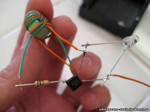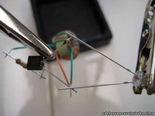 Провод для намотки диаметром 0,1 - 1 мм. Транзистор можно использовать любой, желательно с меньшим напряжением открытия.